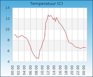Maximum temp. | 12.8 °C om 11:49 u |