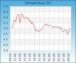 | Maximum temp. | 5.4 °C om 01:22 u |