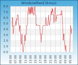 | Windsnelheid en -richting | 0.0 km/u uit ZW |