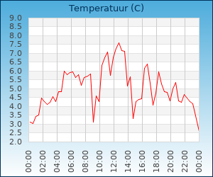 | Minimum temp. | 2.9 °C om 00:14 u |