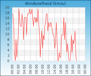 | Maximale windsnelheid | 38.5 km/u om 00:06 u |
