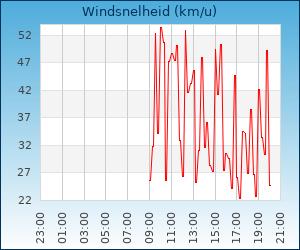 | Maximale windsnelheid | 53.4 km/u om 09:00 u |