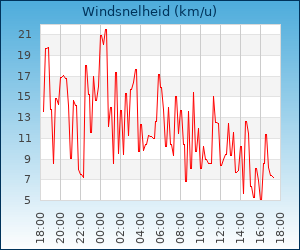 | Maximale windsnelheid | 21.5 km/u om 00:30 u |
