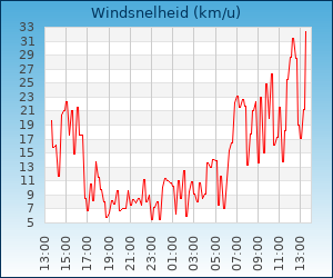 | Maximale windsnelheid | 32.3 km/u om 12:31 u |
