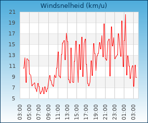 | Maximale windsnelheid | 20.5 km/u om 00:15 u |
