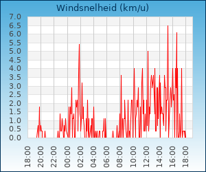 | Maximale windsnelheid | 6.1 km/u om 02:49 u |