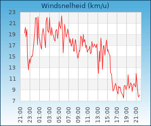| Maximale windsnelheid | 46.3 km/u om 00:12 u |