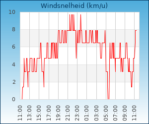 | Maximale windsnelheid | 16.2 km/u om 03:02 u |
