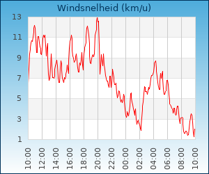 | Maximale windsnelheid | 25.9 km/u om 03:15 u |