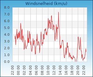 | Maximale windsnelheid | 19.4 km/u om 00:33 u |