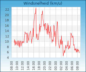 | Maximale windsnelheid | 29.2 km/u om 00:23 u |
