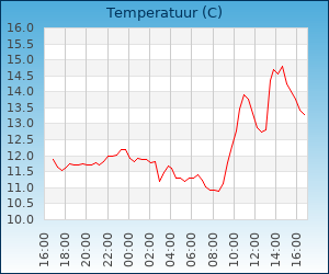 | Maximum temp. | 12.0 °C om 01:29 u |