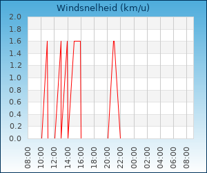 | Maximale windsnelheid | 1.6 km/u om 04:02 u |