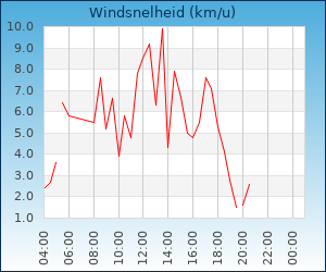 Windsnelheid en -richting | 2.6 km/u uit NNO |