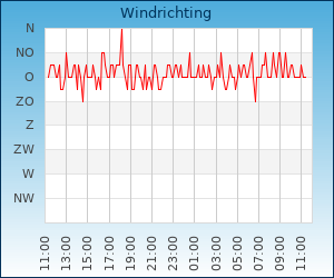 | Windsnelheid en -richting | 10.0 km/u uit NO |