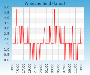 | Maximale windsnelheid | 17.7 km/u om 03:55 u |