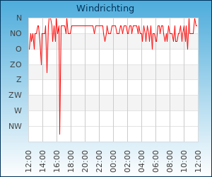 | Windsnelheid en -richting | 6.5 km/u uit NNO |