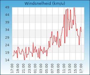 | Maximale windsnelheid | 49.0 km/u om 13:30 u |
