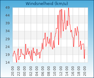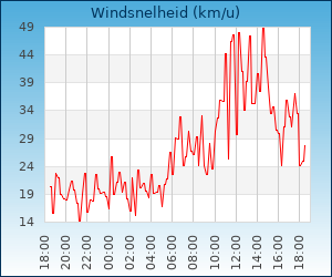 | Maximale windsnelheid | 49.0 km/u om 13:30 u |
