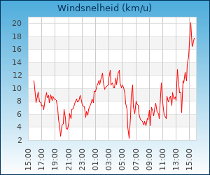 Maximale windsnelheid | 25.7 km/u om 12:35 u |