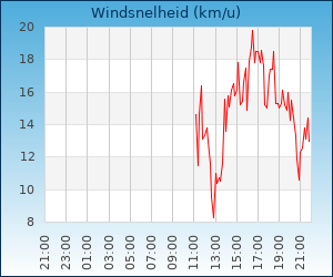 | Maximale windsnelheid | 38.6 km/u om 14:20 u |