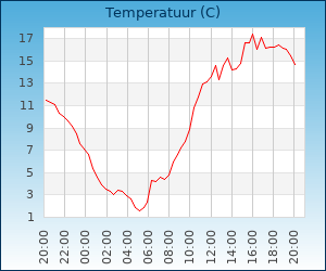 | Maximum temp. | 17.4 °C om 15:48 u |