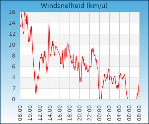 | Maximale windsnelheid | 10.1 km/u om 00:51 u |