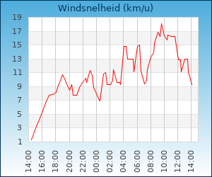 | Windsnelheid en -richting | 16.6 km/u uit WZW |