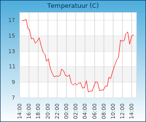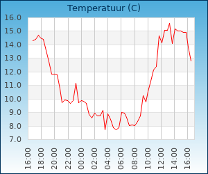 | Maximum temp. | 15.3 °C om 12:43 u |