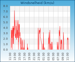 | Maximale windsnelheid | 4.3 km/u om 07:44 u |