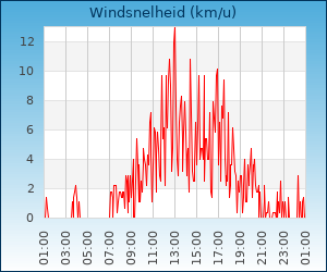 | Maximale windsnelheid | 16.2 km/u om 02:29 u |