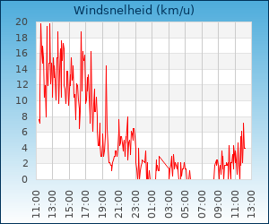 | Maximale windsnelheid | 4.3 km/u om 10:19 u |