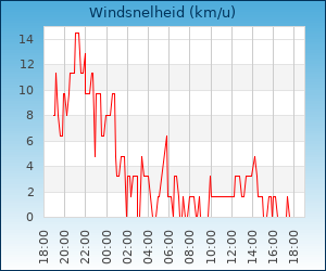 | Maximale windsnelheid | 17.7 km/u om 02:55 u |