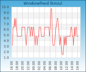| Maximale windsnelheid | 14.5 km/u om 02:12 u |