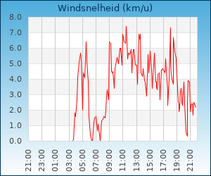 | Windsnelheid en -richting | 12.1 km/u uit WZW |