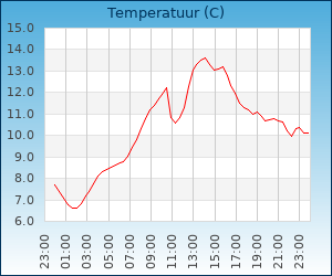 | Maximum temp. | 13.7 °C om 13:57 u |