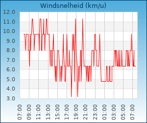 | Windsnelheid en -richting | 8.0 km/u uit W |