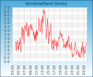 | Maximale windsnelheid | 6.5 km/u om 01:53 u |