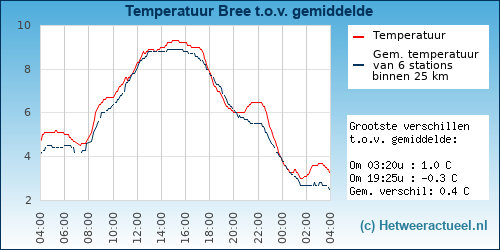 | Minimum temp. | 3.0 °C om 01:28 u |