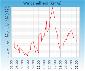 | Maximale windsnelheid | 30.6 km/u om 11:02 u |