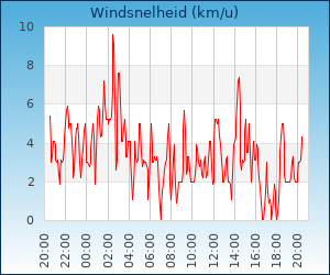 | Maximale windsnelheid | 14.8 km/u om 02:24 u |