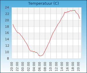 | Maximum temp. | 23.3 °C om 18:03 u |