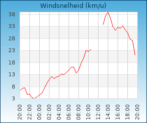 | Windsnelheid en -richting | 23.0 km/u uit ZZO |