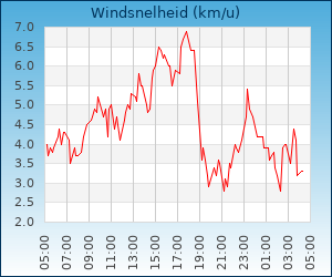 | Windsnelheid en -richting | 3.8 km/u uit OZO |