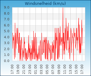 | Maximale windsnelheid | 9.0 km/u om 10:24 u |