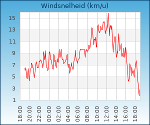 | Maximale windsnelheid | 22.7 km/u om 02:53 u |