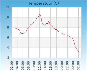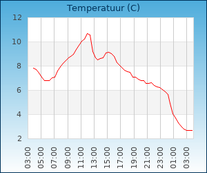| Maximum temp. | 10.8 °C om 12:00 u |