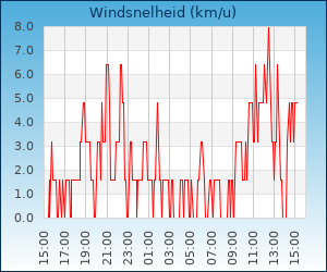 Windsnelheid en -richting | 3.2 km/u uit ONO |