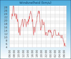 | Maximale windsnelheid | 20.9 km/u om 01:33 u |
