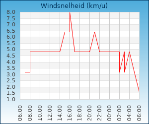 | Maximale windsnelheid | 6.4 km/u om 01:00 u |